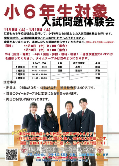 11/8(土)中学入試問題体験会、学校説明会のお知らせ