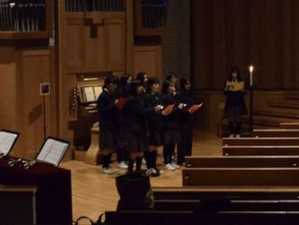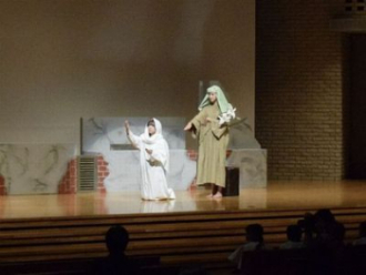 12月19日(金)10:30~11:30、大チャペルにて小学生・中学生が参加しての“クリスマスページェント”(イエス・キリスト降誕劇)の礼拝が守られました。高校生がナレーターを務め、その聖書朗読に合わせて降誕劇が繰り広げられました。また、中学聖歌隊の歌声、また、ハンドベル・クワイアの奉鐘がチャペル全体に満ち、2階席の保護者の方々、教職員も共に讃美歌を歌い、クリスマスの喜びを分かちあいました。